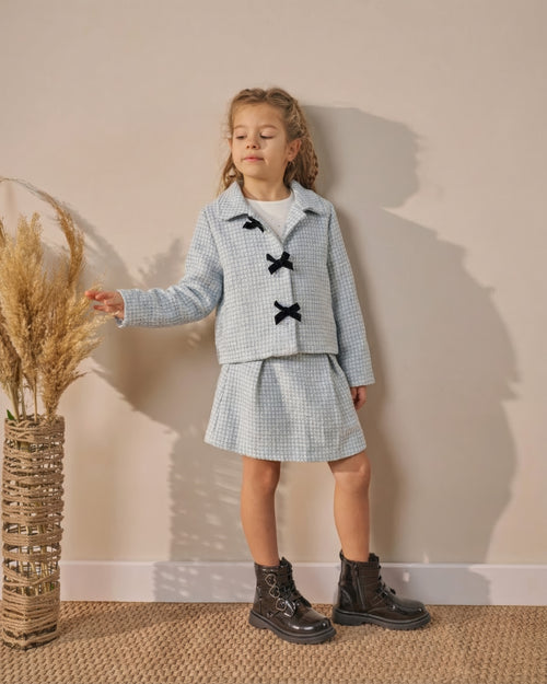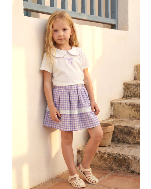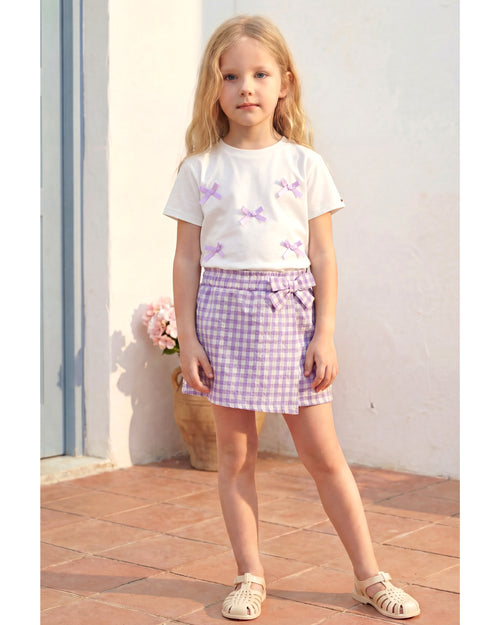 Kız Çocuk Fiyonklu Tişört Ekose Etek Takım (4-8 Yaş)