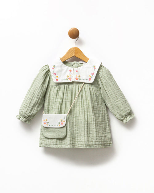 Kız Bebek Nakışlı Bebe Yaka Müslin Çantalı Elbise (6/9 Ay - 3/4Yaş)
