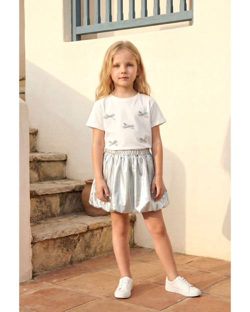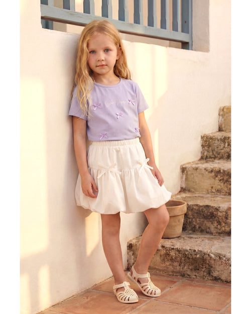 Kız Çocuk Fiyonk Detaylı Tişört Balon Etekli Takım (3-7 Yaş)