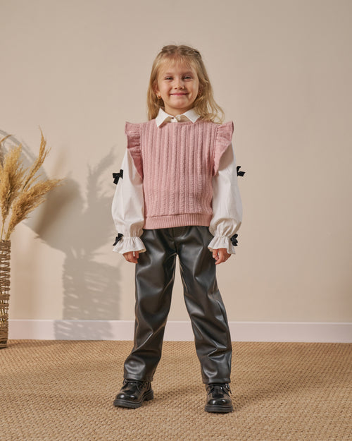 Müslin Yelekli Fırfır Paça Pantolonlu Bayramlık 3'lü Kız Çocuk Alt Üst Takım (3-6 Yaş)