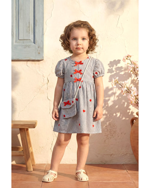 Kız Bebek Fiyonk Detaylı Çantalı Elbise (9 Ay- 3 Yaş)