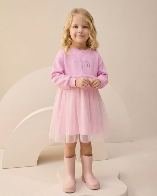Fiyonk Nakışlı Tüllü Kız Çocuk Elbise (4-7 Yaş)