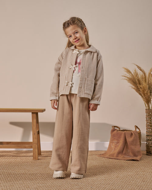 Fiyonk Detaylı Çizgili 3'lü Bayramlık Kız Çocuk Alt Üst Takım (4-7 Yaş)