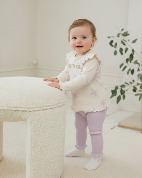 Ruffled Shoulder Floral Print Leggings Baby Girl Two-Piece Outfit Set (9-24 Months)