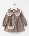 Linen Baby Girl Eid Dress Lace Detail Peter Pan Collar Matching Bag (9 Months–3 Years)