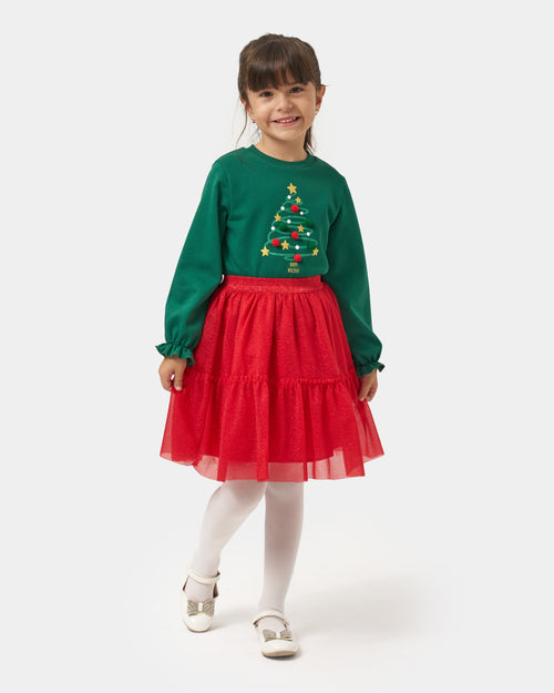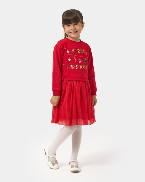 Girls Merry Christmas Printed Tulle Dress, Holiday Outfit (4–7 Yrs)