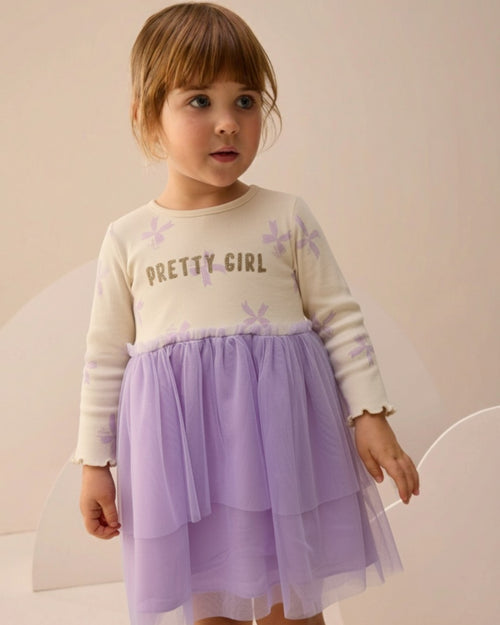 Girls Printed Dress with Tulle Detail (3-6 Years)