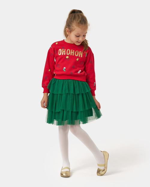 Girls Oh Oh Oh Sequin Embroidered Two-Piece New Year Outfit with Triple-Layer Tulle Skirt (4–7 Yrs)