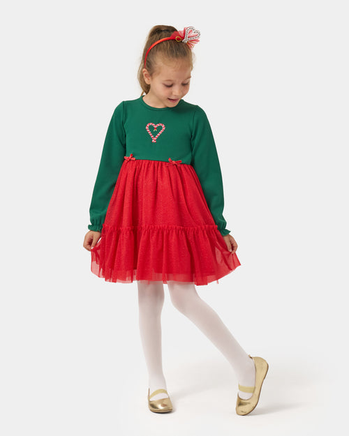 Girls Tulle Dress with Candy Cane Embroidery and Headband, New Year Outfit (3–6 Yrs)